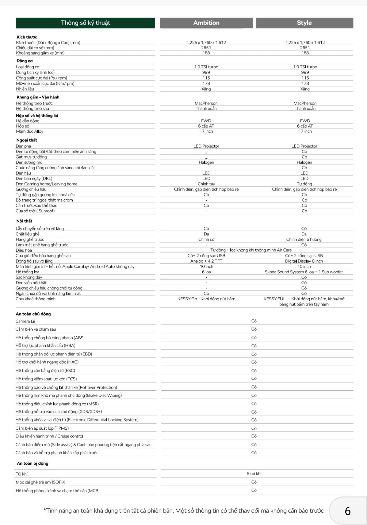 📊 So sánh chi tiết Kushaq Ambition vs Style