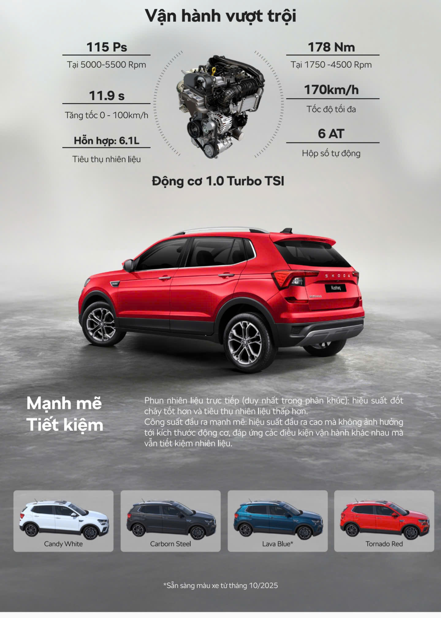 Động cơ: 1.0L TSI Turbo – 115 mã lực, mô-men xoắn 178Nm