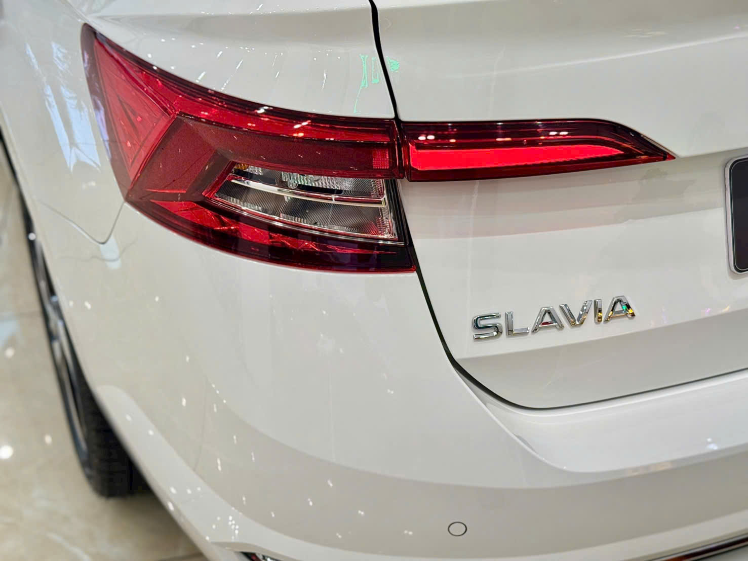 Đuôi xe Slavia được thiết kế tinh tế với cụm đèn hậu LED hiện đại, cùng cánh lướt gió nhỏ tích hợp, làm tăng tính khí động học và sự năng động cho xe.
